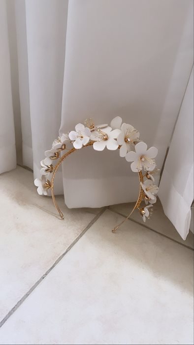 כתר פרחים צבע לבן כתר מוזהב.