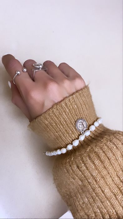 צמיד פנינה אמיתית דגם שובל מטבע.