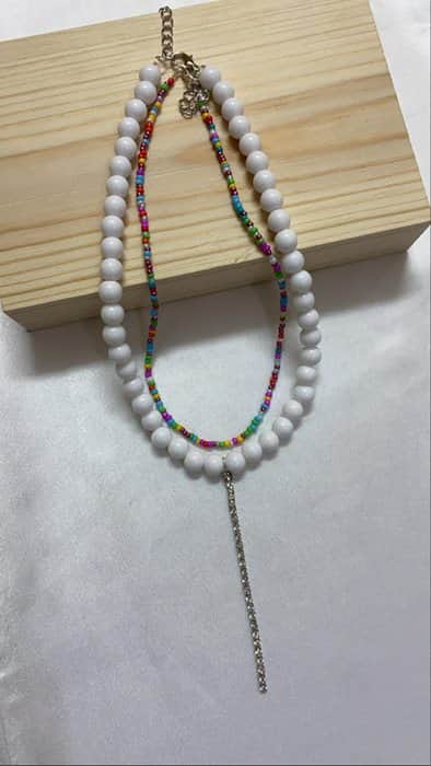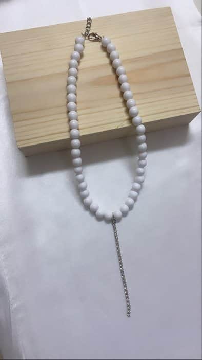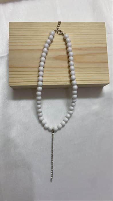 שרשרת אופיר -חרוזים לבנים עם תליון שרשרת כסופה.