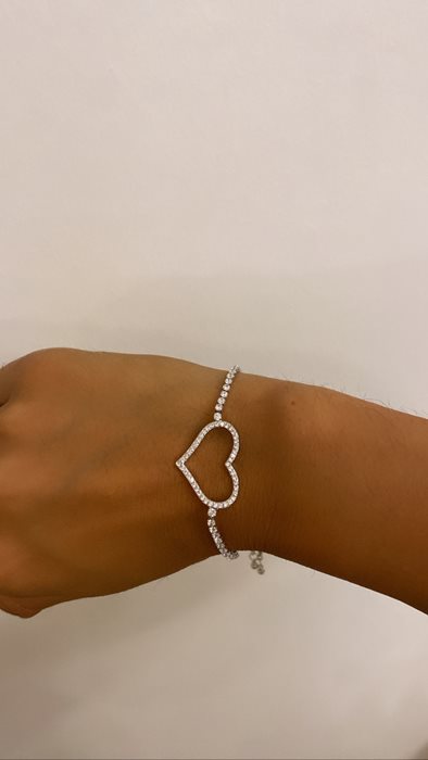 צמיד טניס לב צבע כסף.