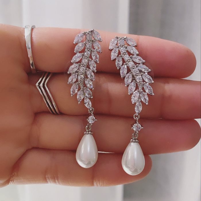 עגיל מטפס זרקון בשילוב פנינת טיפה.