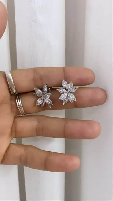 זוג עגילי פרח צמוד זרקון.