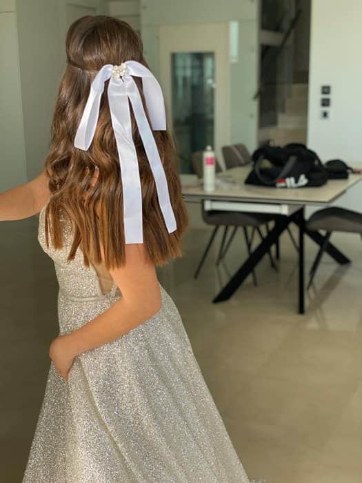 סרט פופיון סאטן לבן בתוספץ פנינה וקריסטל.